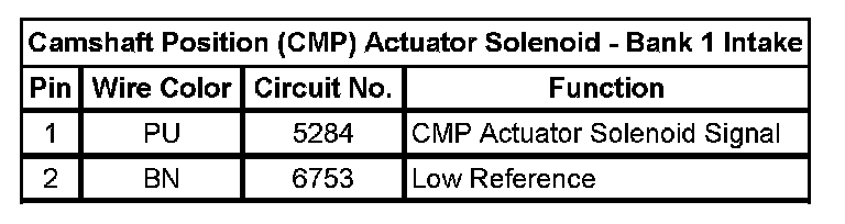 Camshaft Position (CMP) Actuator Solenoid - Bank 1 Intake