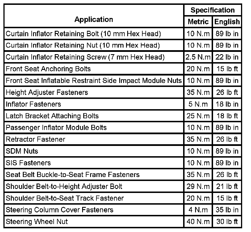 Fastener Tightening Specifications