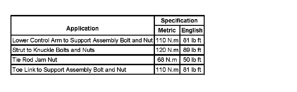 Fastener Tightening Specifications: