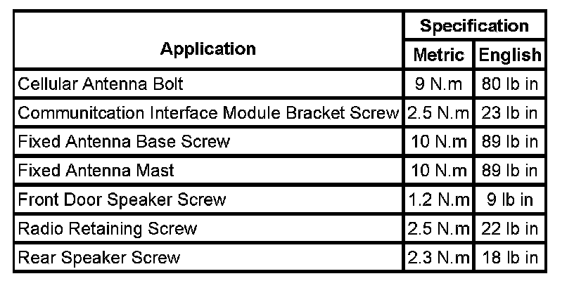 Fastener Tightening Specifications