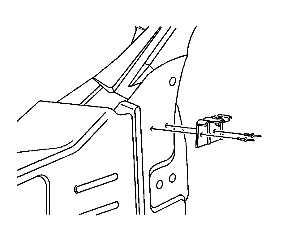 2. Remove the rivets attaching the upper bracket to the front hinge pillar.