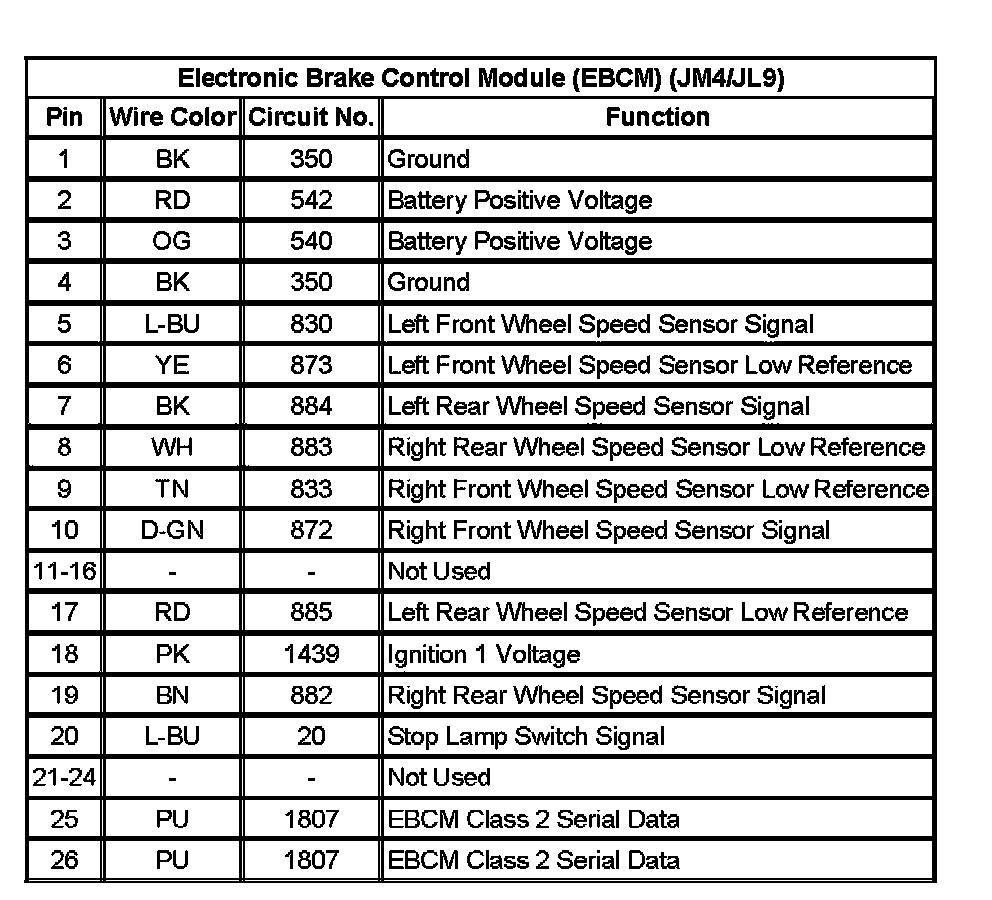 Electronic Brake Control Module (EBCM) (JM4/JL9):