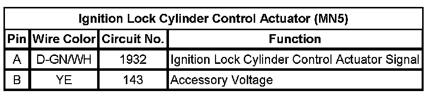 Ignition Lock Cylinder Control Actuator (MN5)