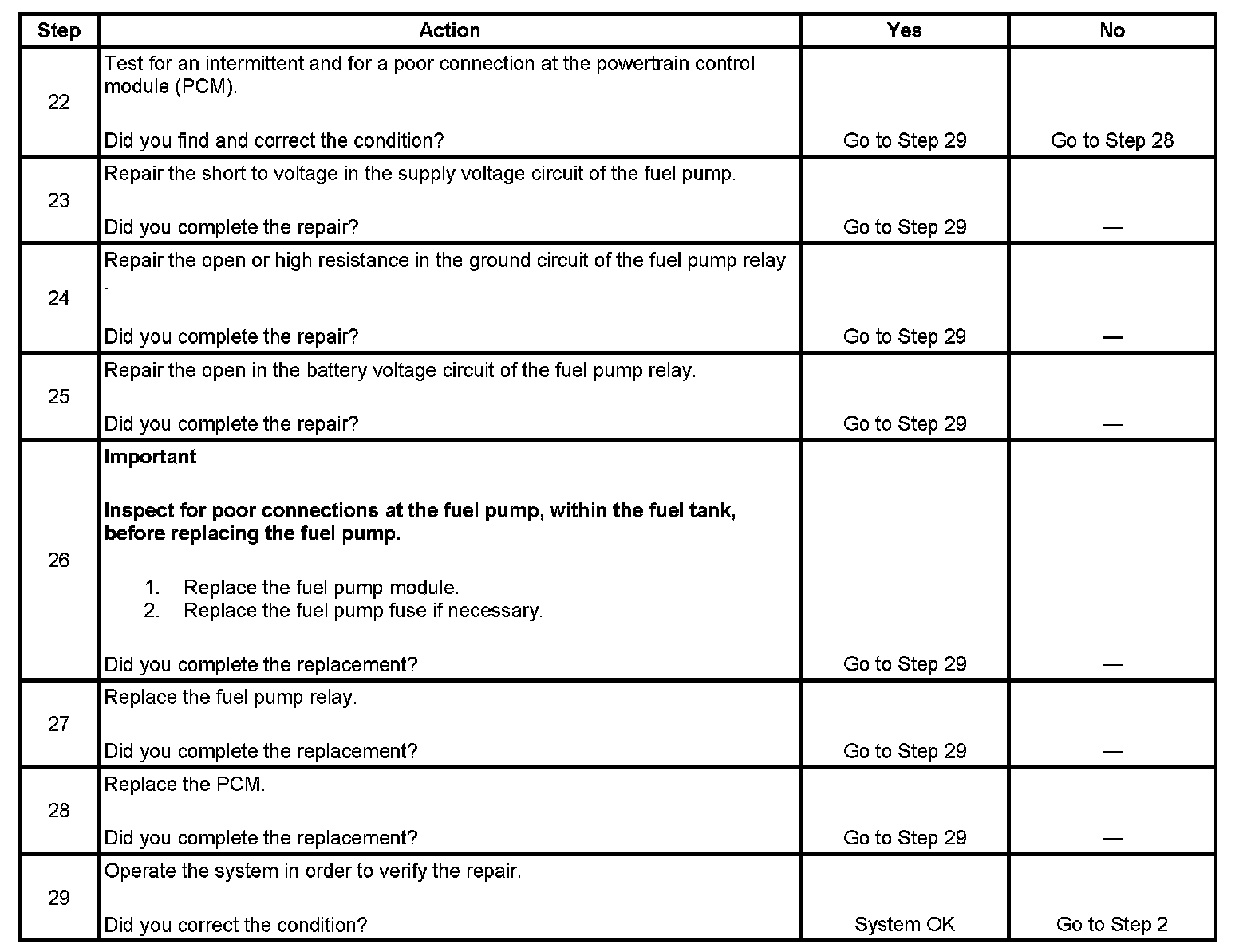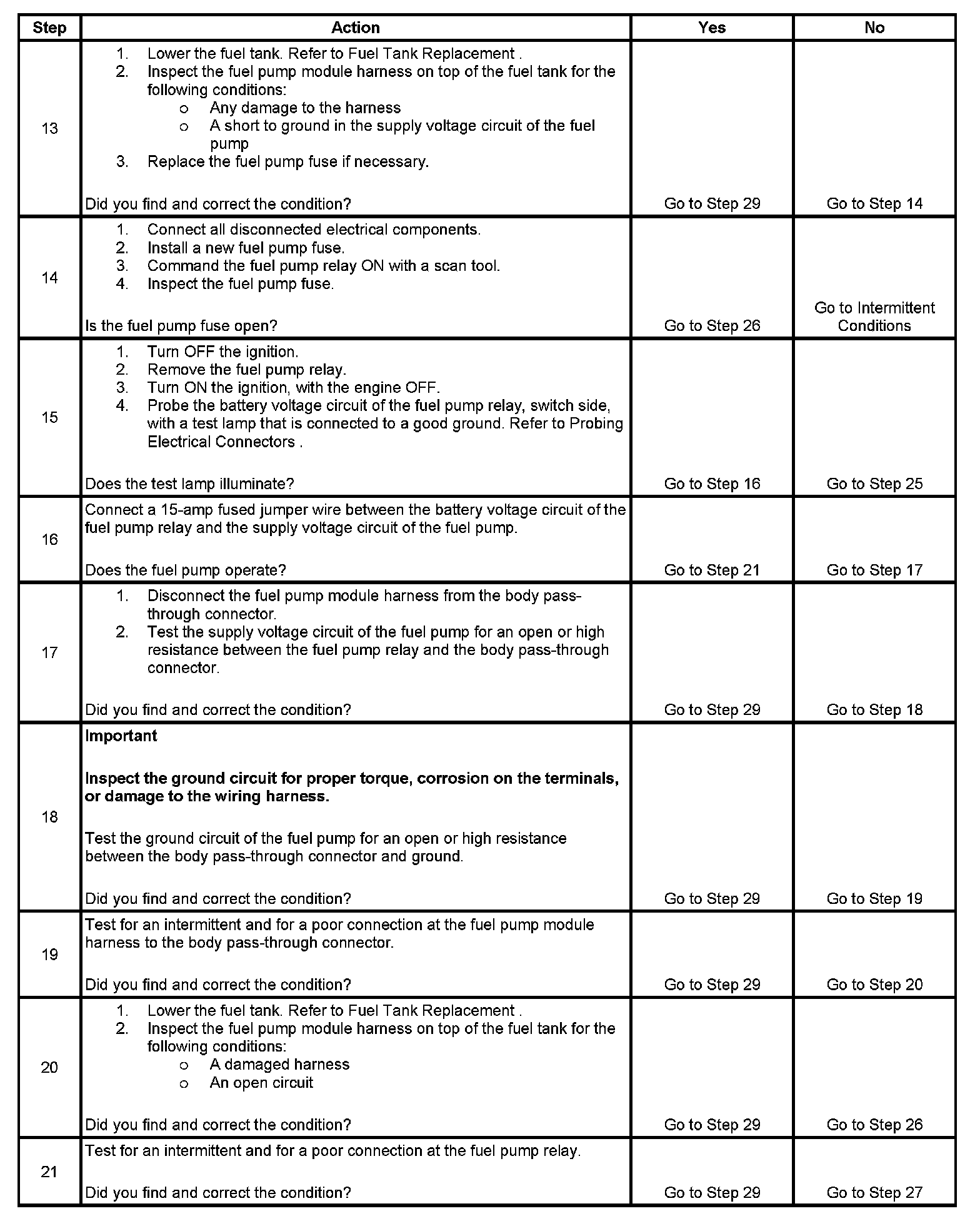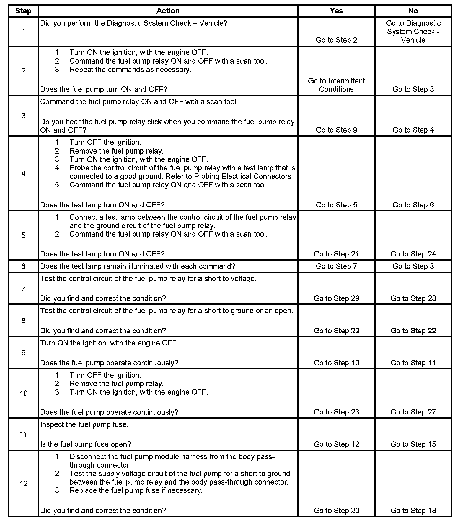 Fuel Pump Electrical Circuit Diagnosis