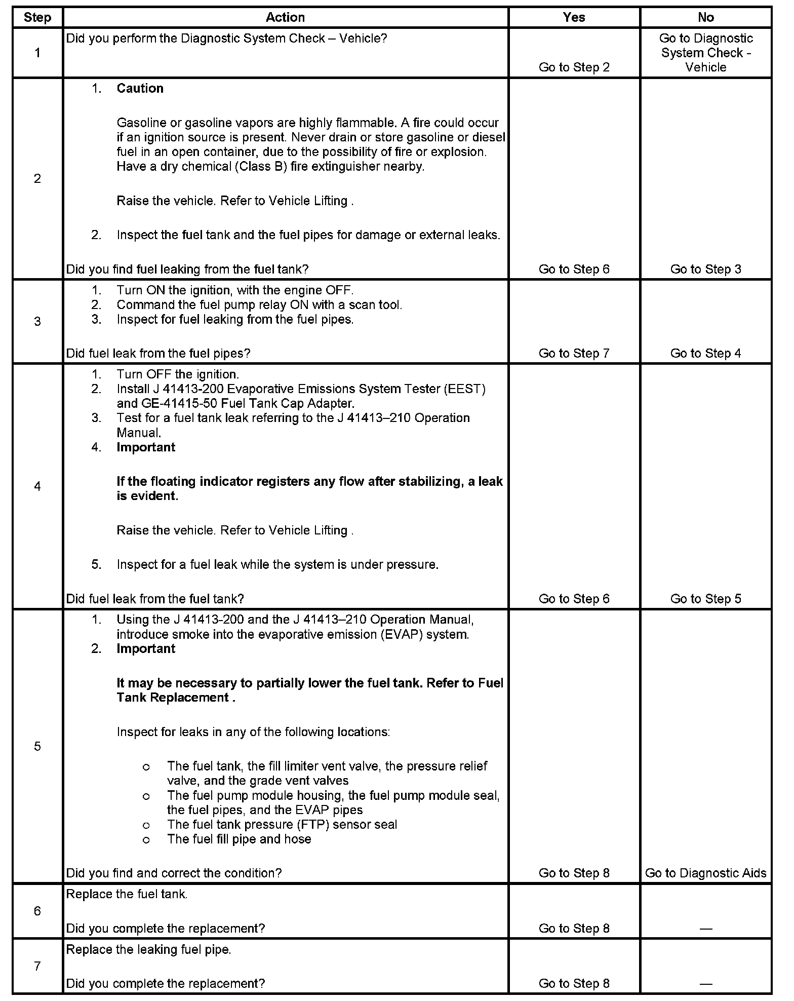 * If the fuel level is low, a liquid fuel leak may not be evident.