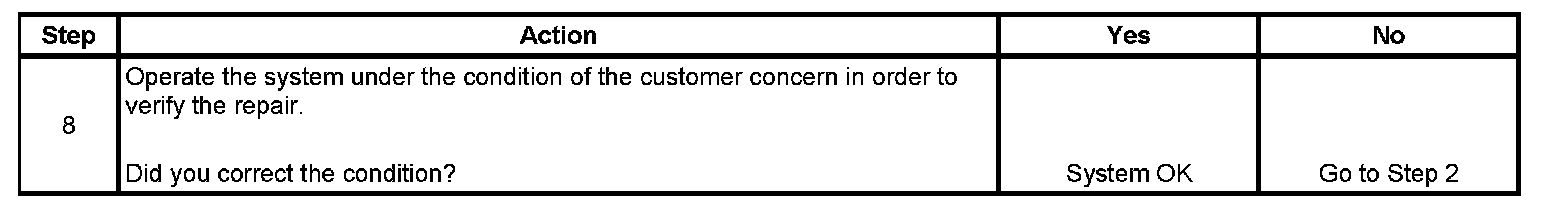 The numbers below refer to the step numbers on the diagnostic table.