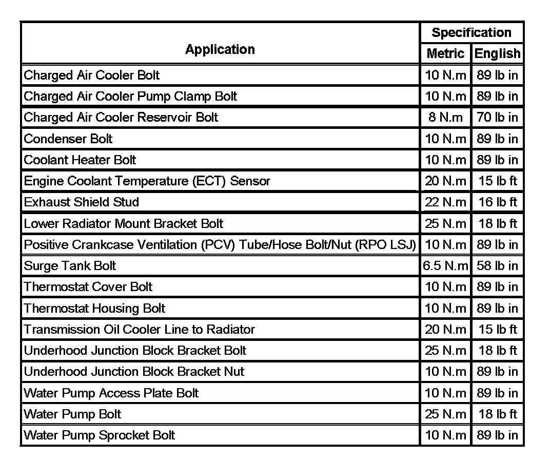 Fastener Tightening Specifications: