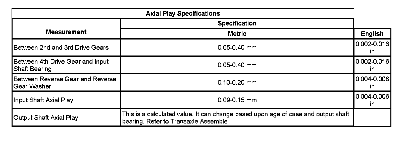 Transmission Clearance Specifications