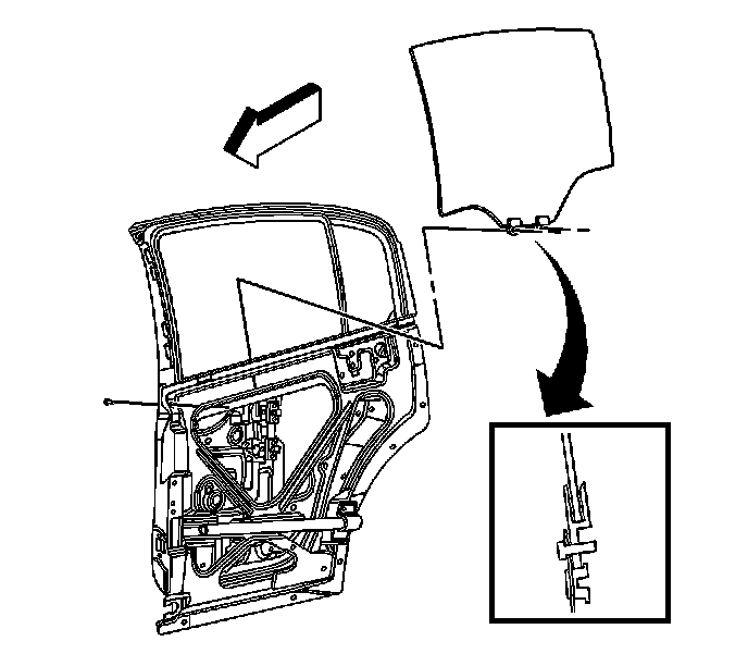 1. Install the rear side door window in the door.