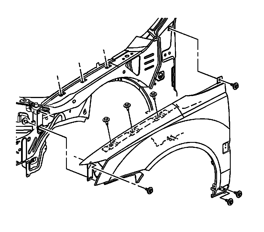 * The fender emblem. Refer to Front Fender Emblem/Nameplate Replacement.