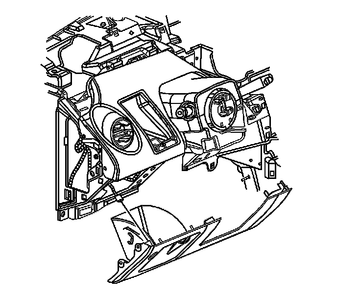 10. Slide the restraint module down and rearward to allow clearance for the I/P trim panel bracket.