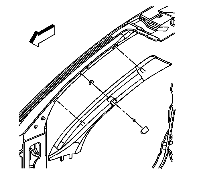 1. Position the windshield garnish molding in the vehicle. Install the molding by pushing the molding over the clip locations.