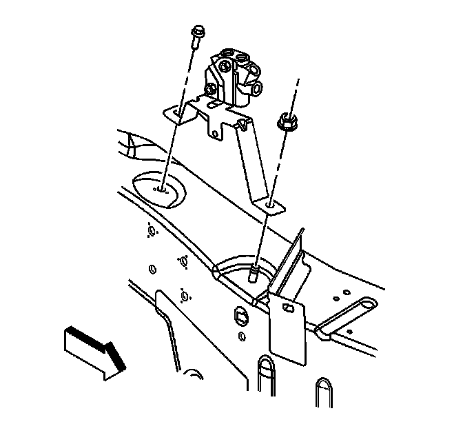 8. Remove the proportioning valve assembly bracket mounting nut and mounting bolt.