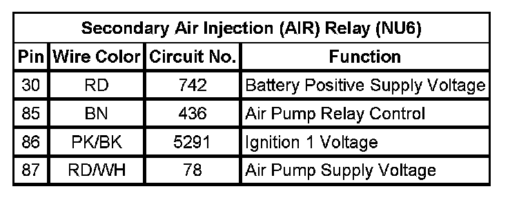 Secondary Air Injection (AIR) Relay (NU6)