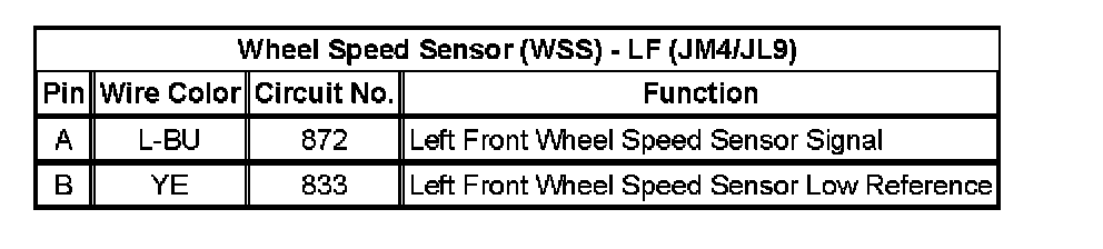 Wheel Speed Sensor (WSS) - LF (JM4/JL9):