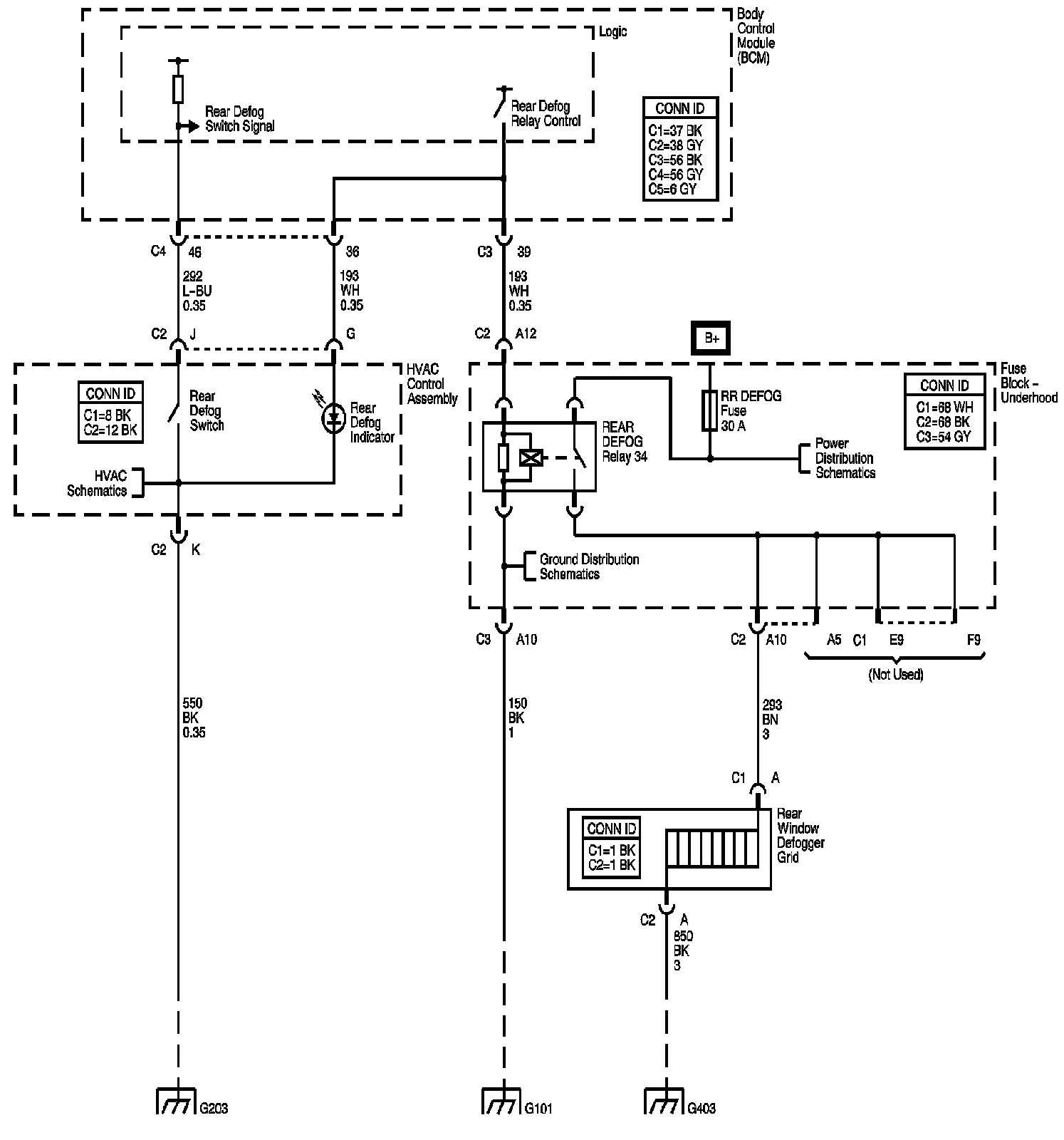 The locations for the Connectors, Grounds, Splices, and Grommets shown within these diagrams can be found via their numbers at Vehicle Locations.