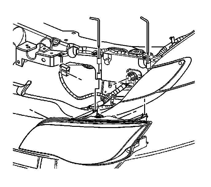 Important: Ensure that the retaining pins are properly seated in the headlamp bracket.