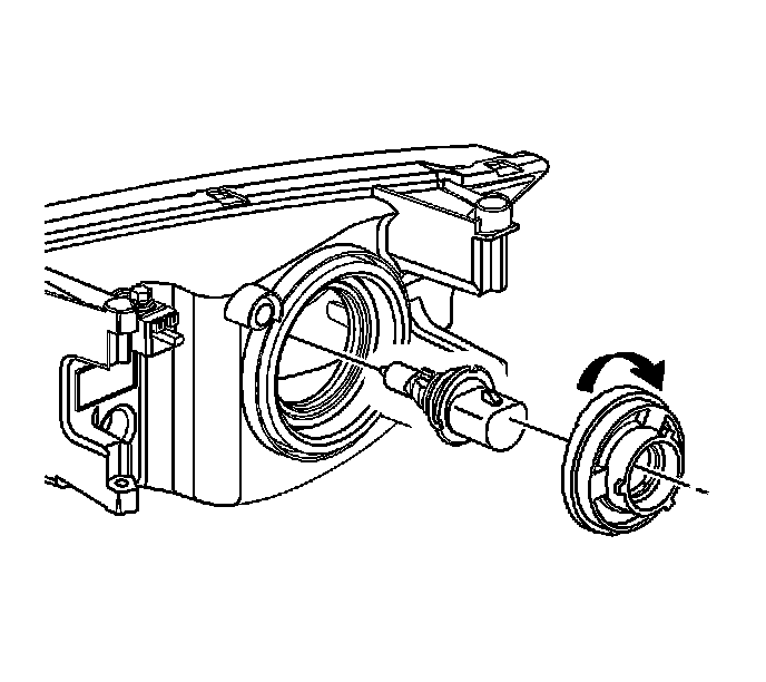 6. Remove the headlamp bulb retaining nut by rotating the nut counterclockwise.