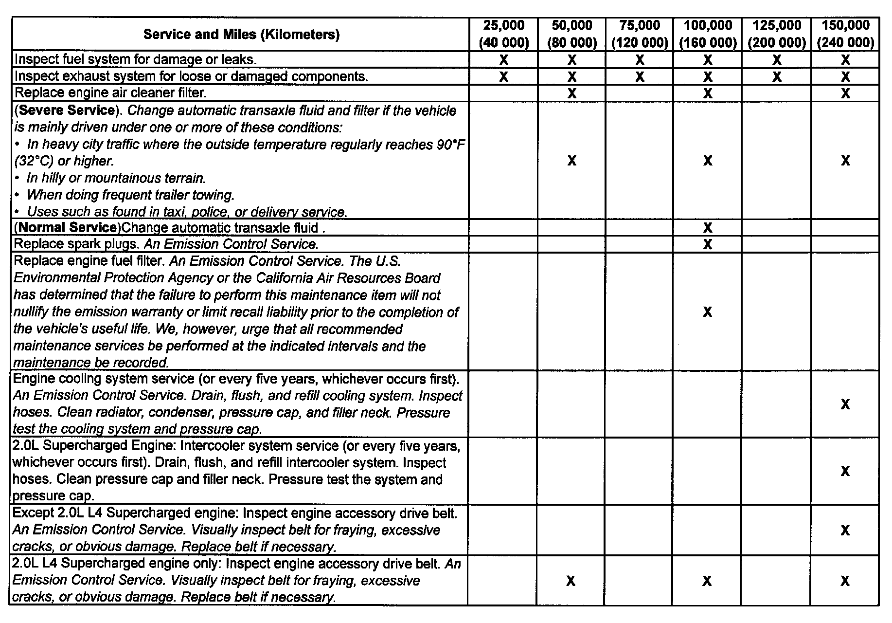 service (I or II) after the indicated miles (kilometers) shown for each item.