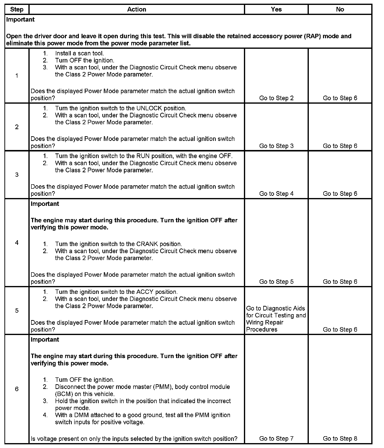 7. This step tests for no battery voltage on the required signal circuits.