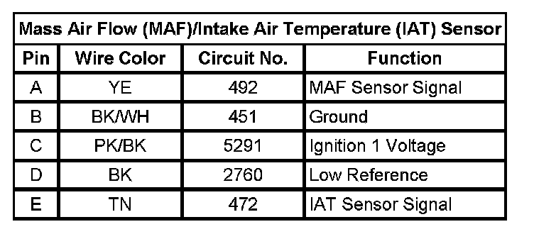 Mass Air Flow (MAF)/Intake Air Temperature (IAT) Sensor