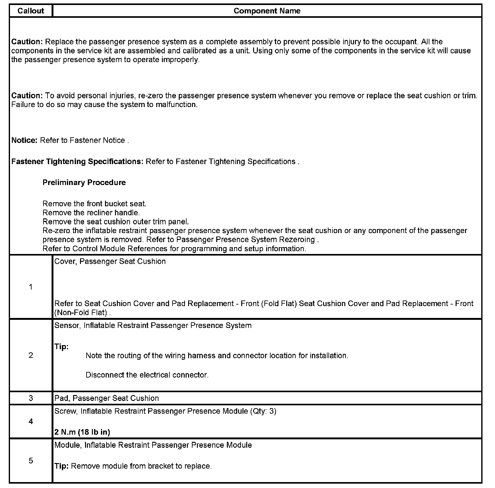 Inflatable Restraint Passenger Presence System Replacement - Front (without Heated Seat)