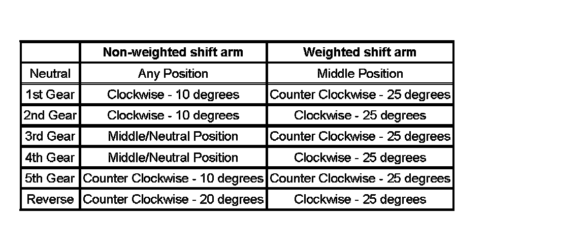 Shift Control Lever and Selector Control Lever Position/Rotation Specifications: