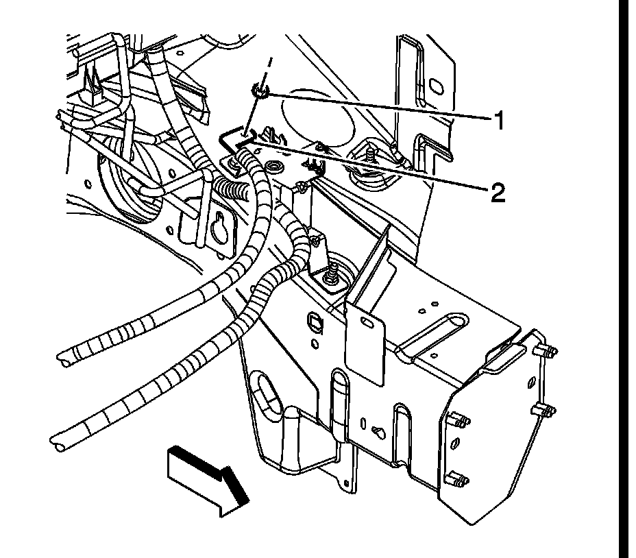 4. Install the negative battery cable ground terminal (2) to the stud (1).