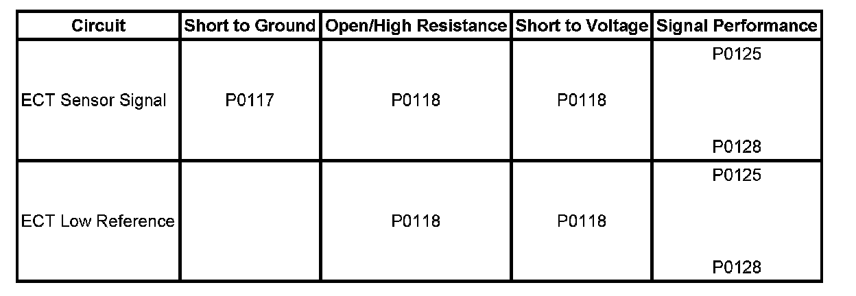 The diagnostic Fault Information table identifies each circuit that makes up an electrical subsystem and the associated circuit faults. DTCs and symptoms are listed in the table for all circuit fault modes. This information can be used to diagnose an electrical fault, or as a quick visual aid showing how the different symptoms and DTCs apply for the subsystem being diagnosed.