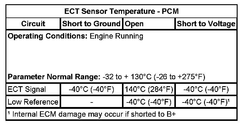 The Typical Scan Tool Data table identifies a scan tool data parameter and its value in reference to potential circuit faults.