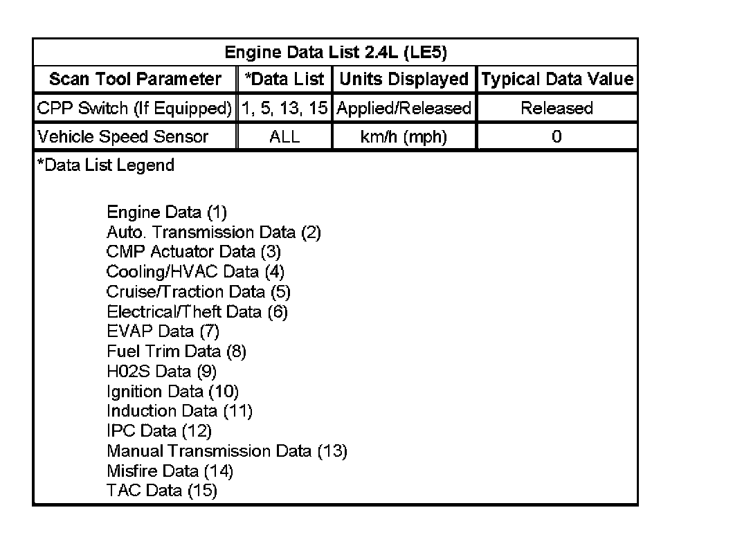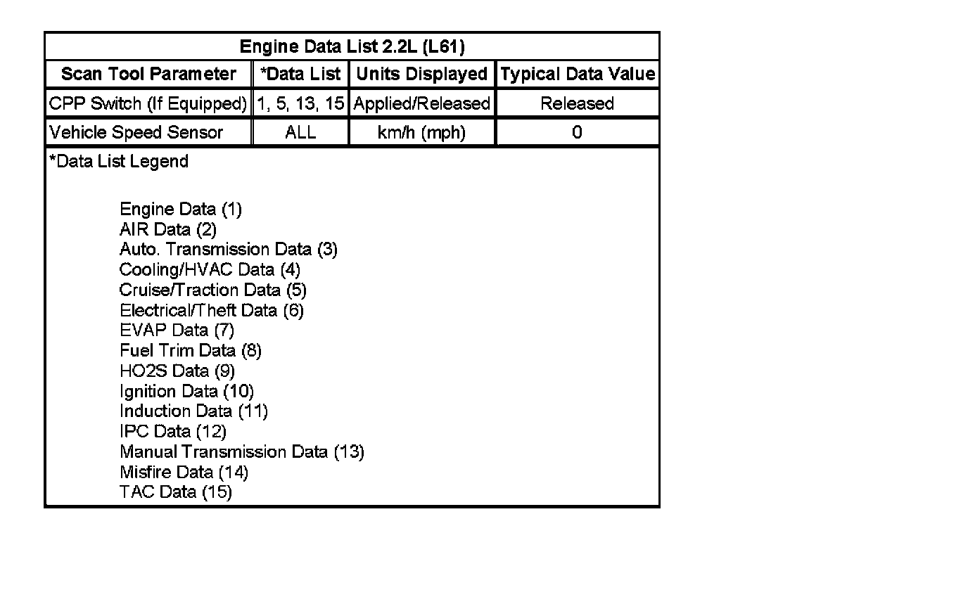 Only the parameters listed below are used in this manual for diagnosing. If a scan tool displays other parameters, the values are not recommended by General Motors for use in diagnosis.