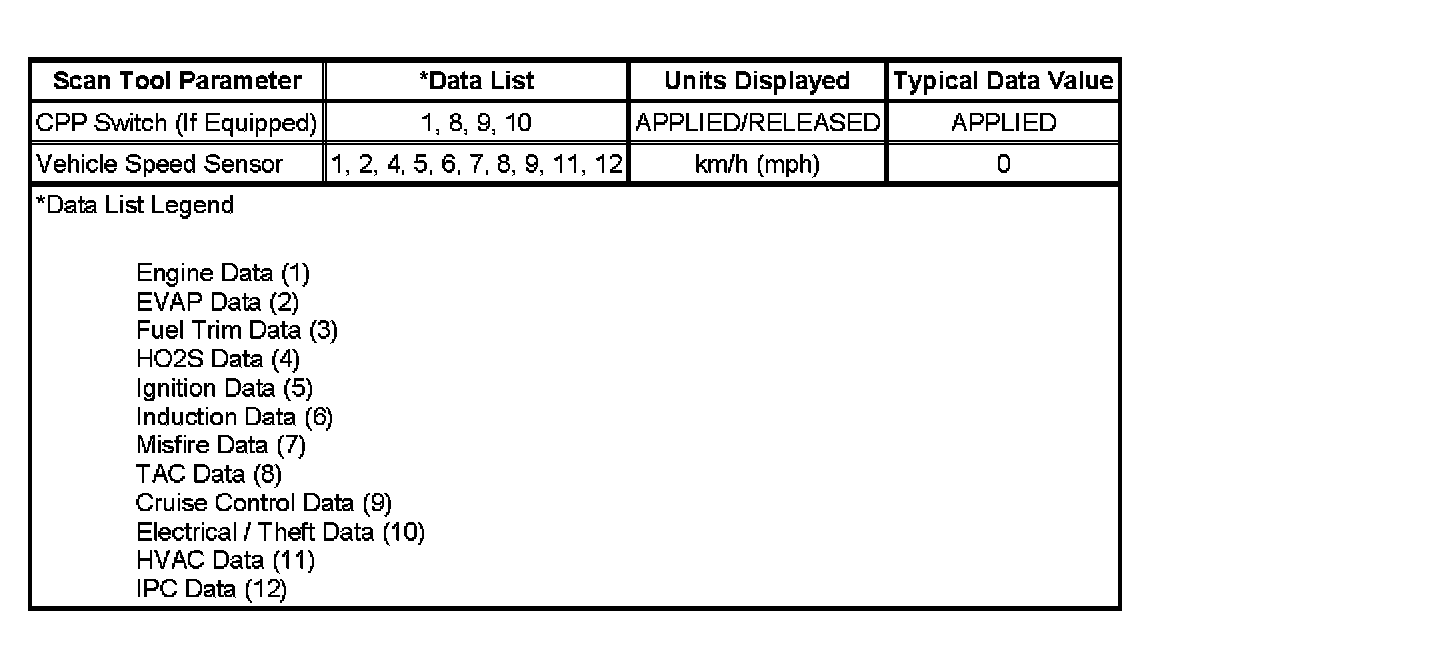 Only the parameters listed below are used in this manual for diagnosing. If a scan tool displays other parameters, the values are not recommended by General Motors for use in diagnosis.