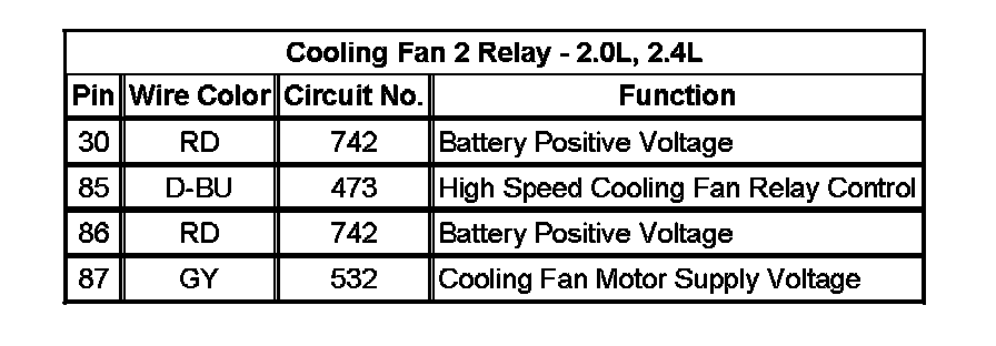 Cooling Fan 2 Relay - 2.0L, 2.4L