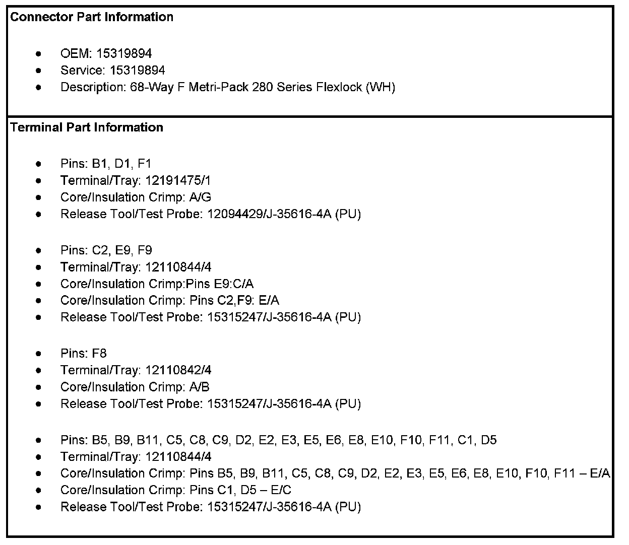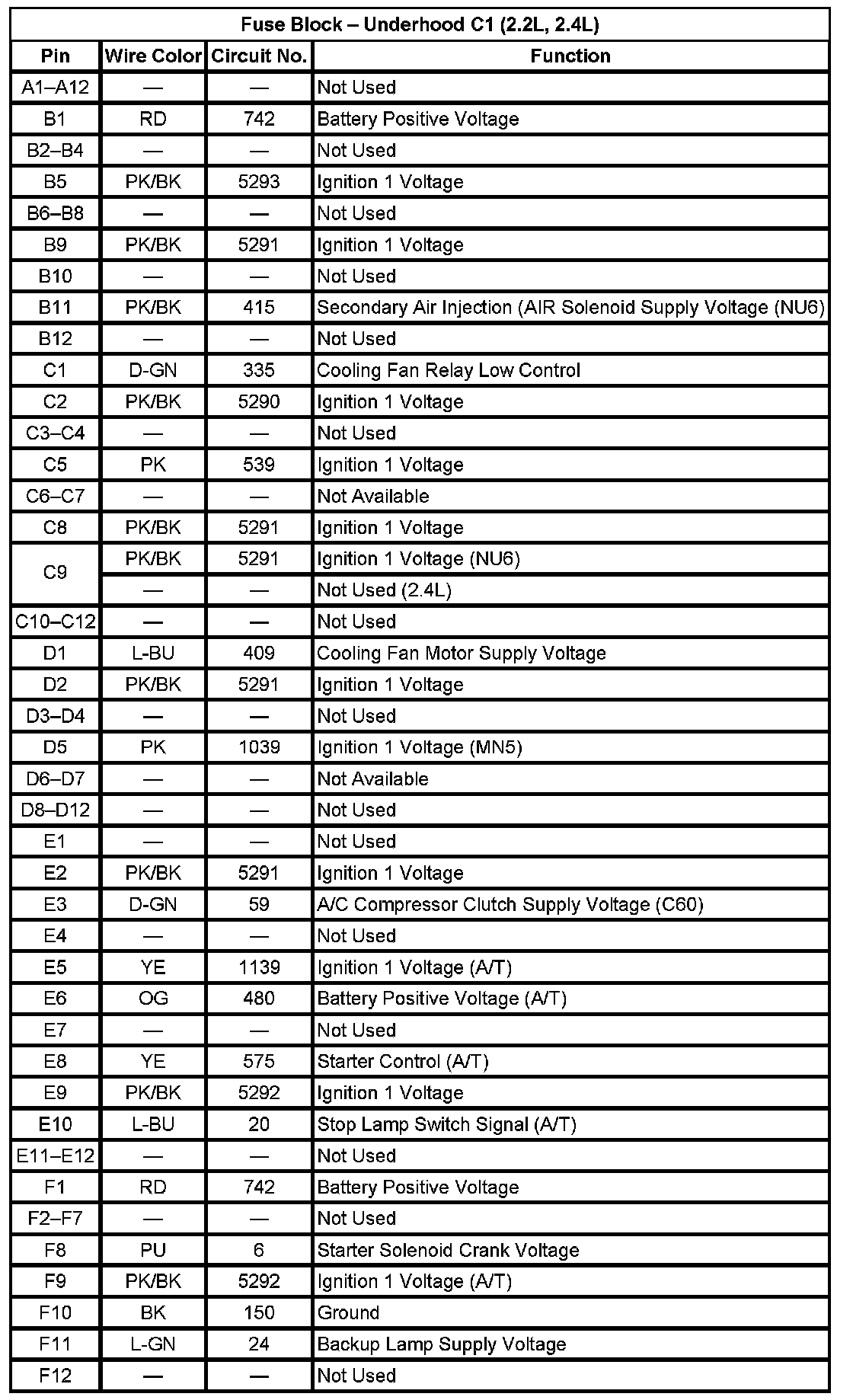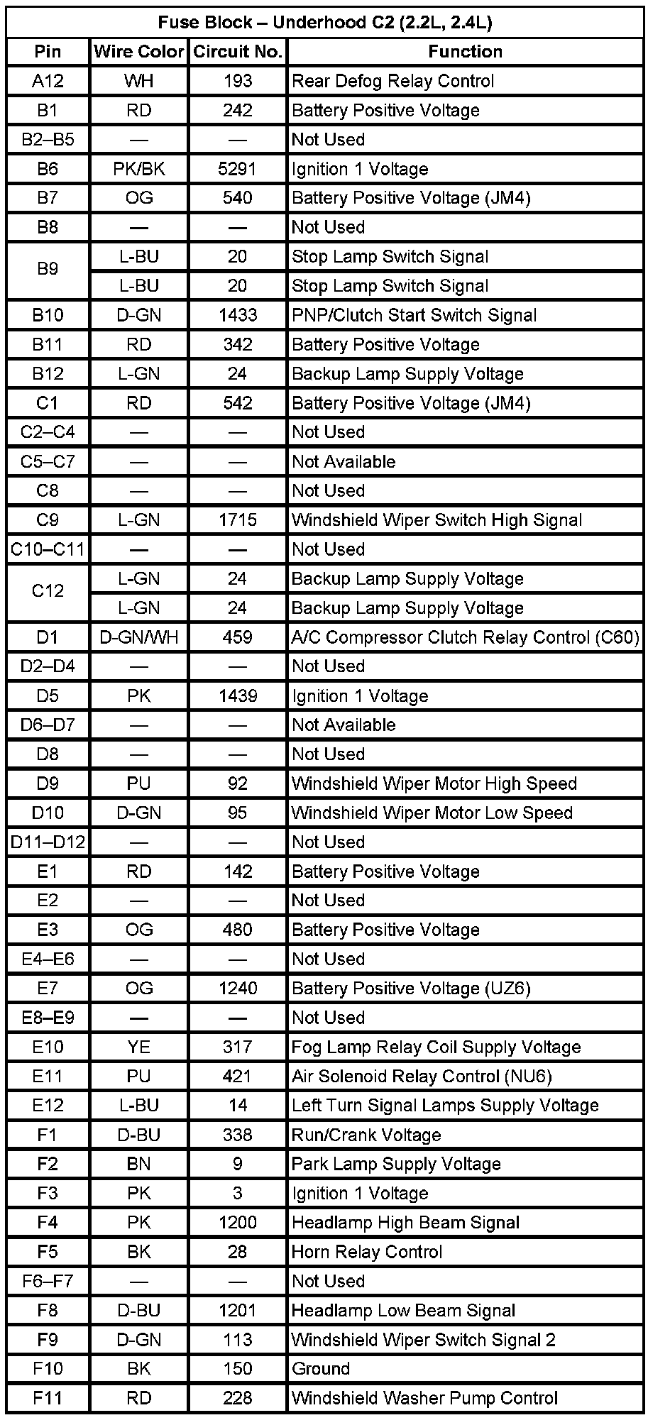 Fuse Block - Underhood C2 (Pin A12 To F11):