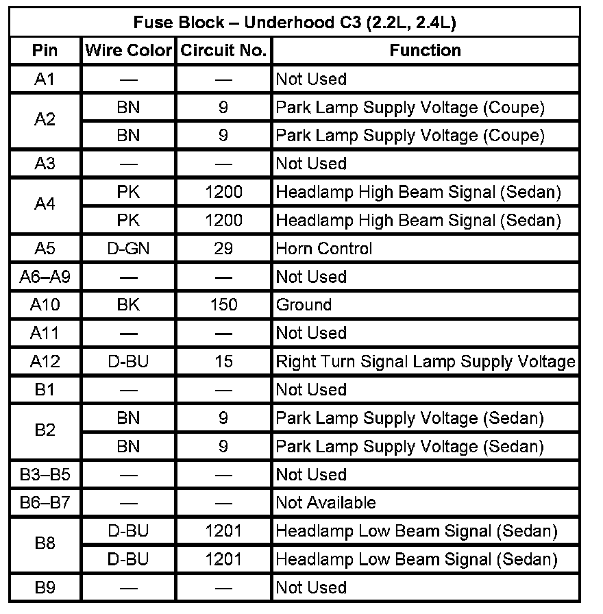 Fuse Block - Underhood C3 (2.2L, 2.4L)