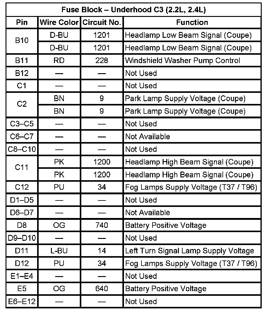 Fuse Block - Underhood C3 (Pin B10 To E12):