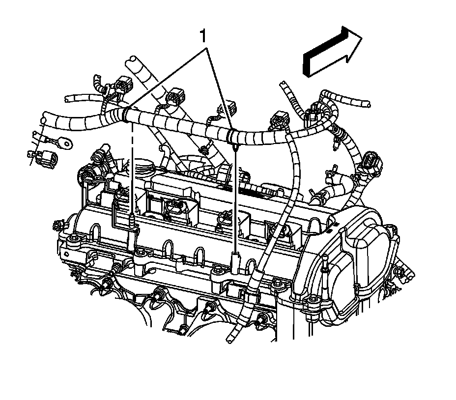64. Install the engine harness clip (1) to the EVAP purge solenoid bracket.
