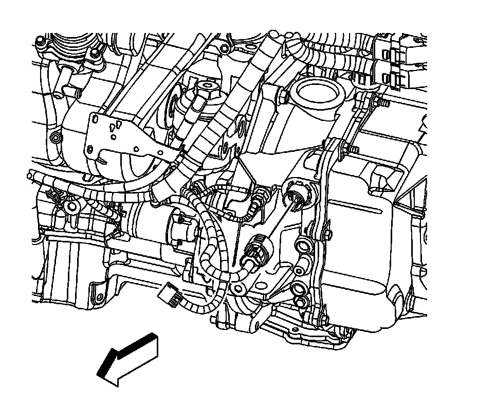40. Install the engine harness clips to the thermostat housing and engine brackets.