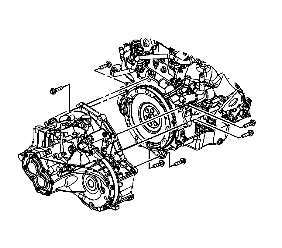 6. If equipped with a manual transaxle, install the transaxle to engine bolts/stud.