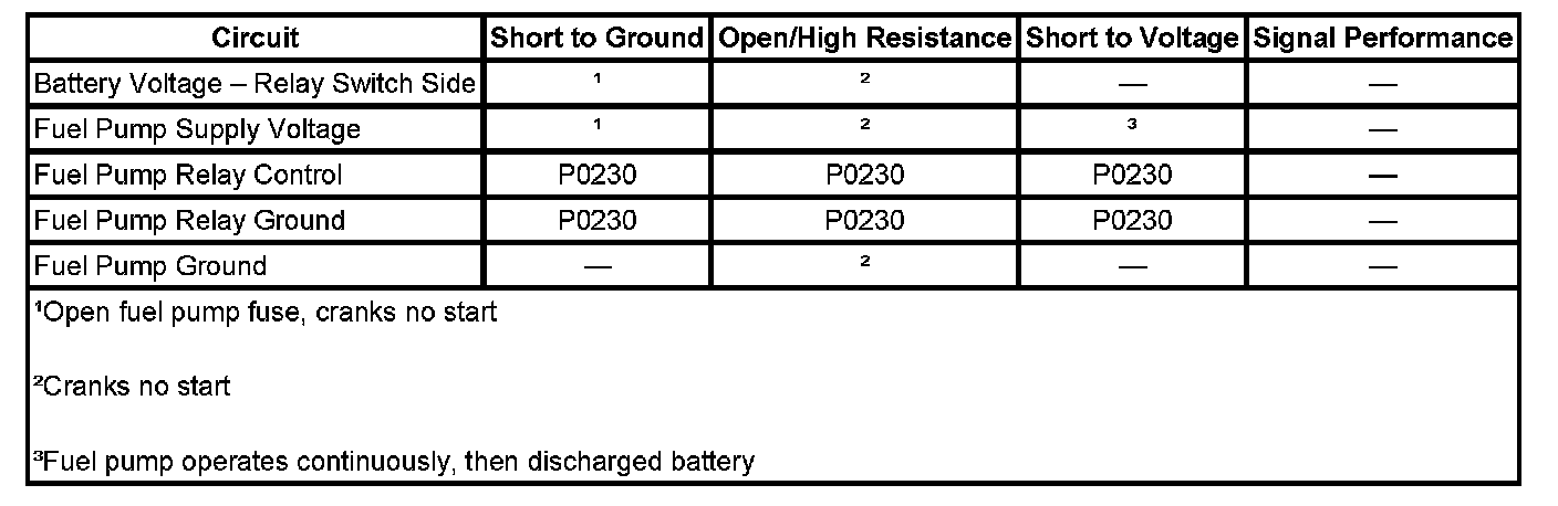 ^ If the fuel pump does not operate, test for an open or high resistance in the supply voltage circuit of the fuel pump, an open or high resistance in the ground circuit of the fuel pump, an intermittent or poor connection at the fuel pump module cover, or a faulty fuel pump module.