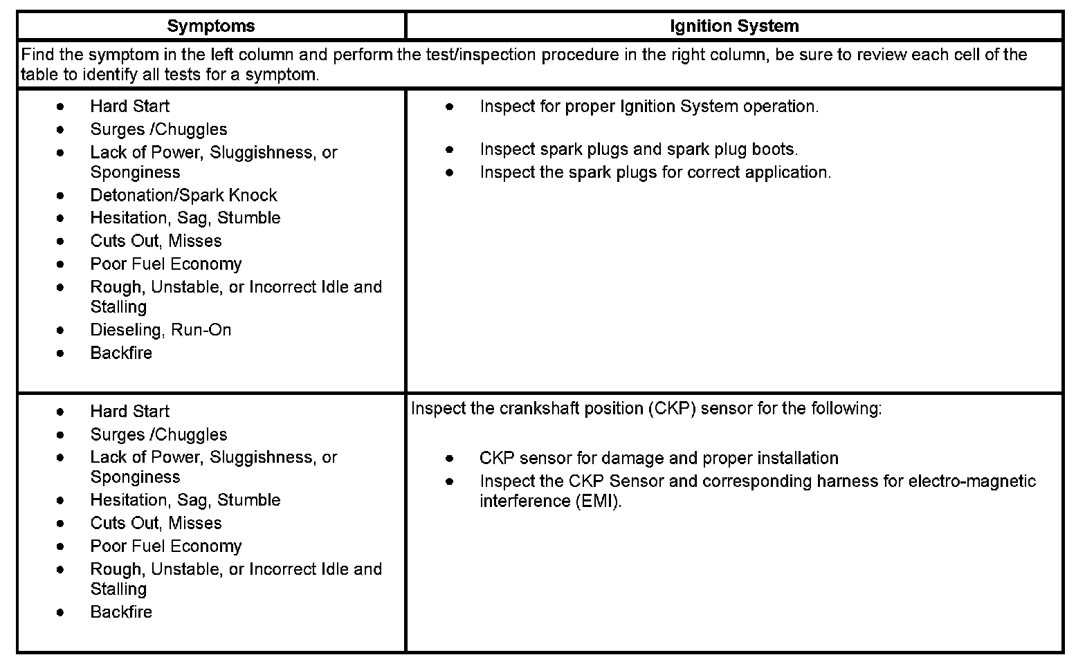 - Symptoms - Ignition System