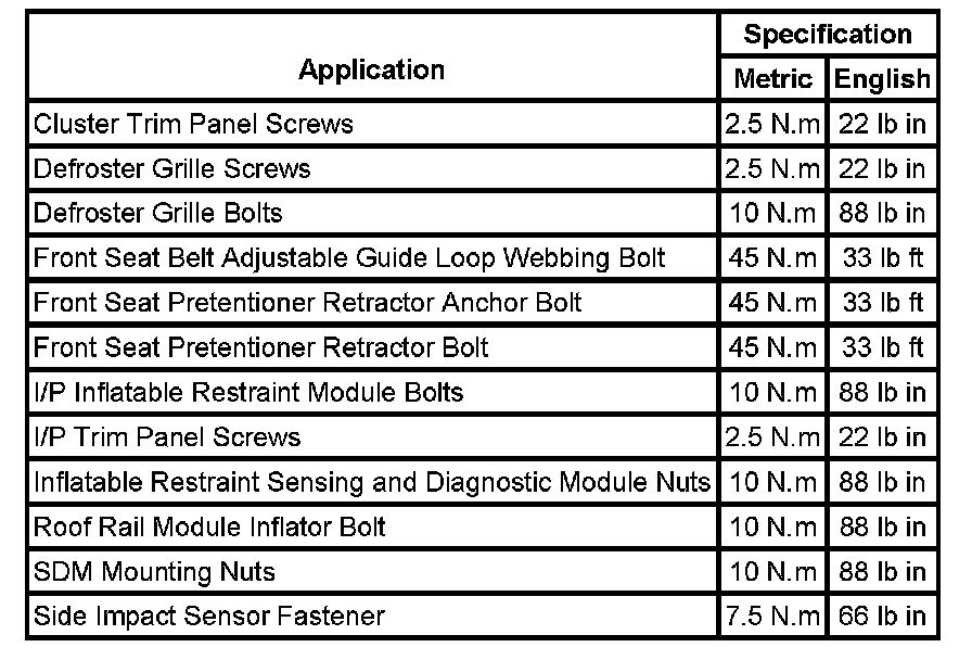 Fastener Tightening Specifications