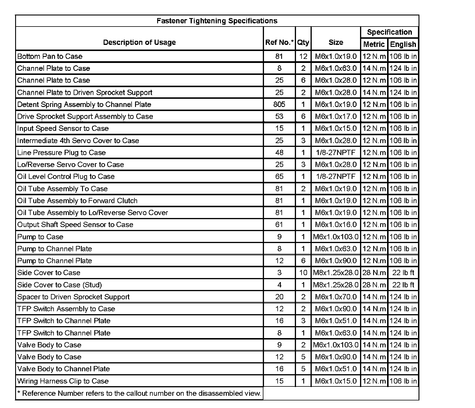 Fastener Tightening Specifications: