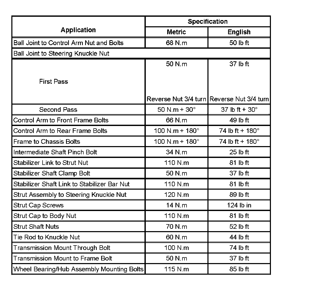 Fastener Tightening Specifications: