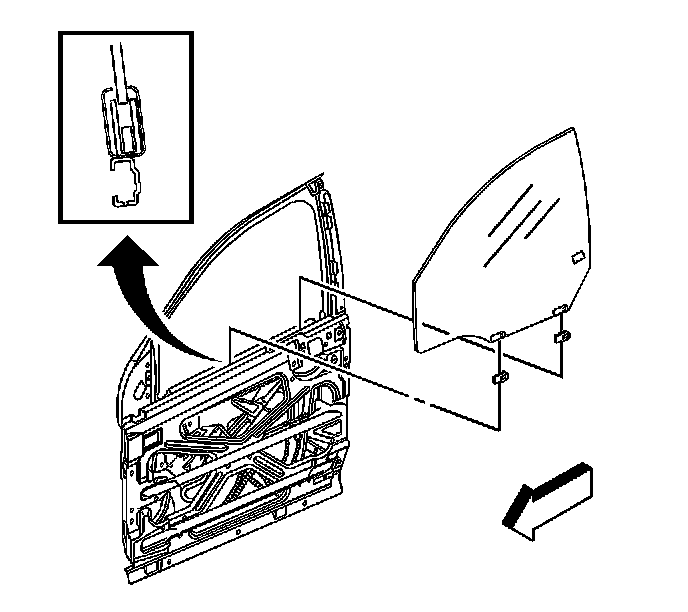 8. Disengage the window clips (2) from the window regulator sash channel (1).