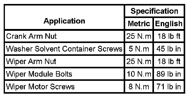 Wiper and Washer Systems: Specifications