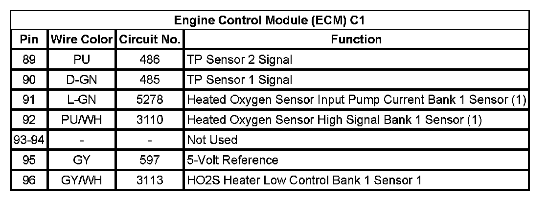 Engine Control Module (ECM) C1 (Pin 89 To 96):