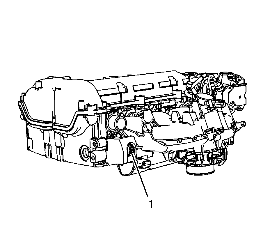 5. Remove and discard the fuel injection fuel rail fuel pressure sensor (1).