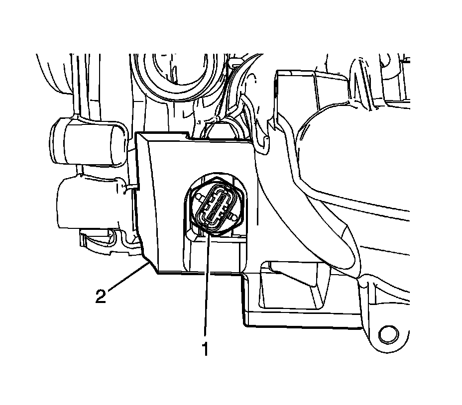 2. Disconnect the fuel injector wiring harness electrical connector (1) from the fuel injection fuel rail fuel pressure sensor.