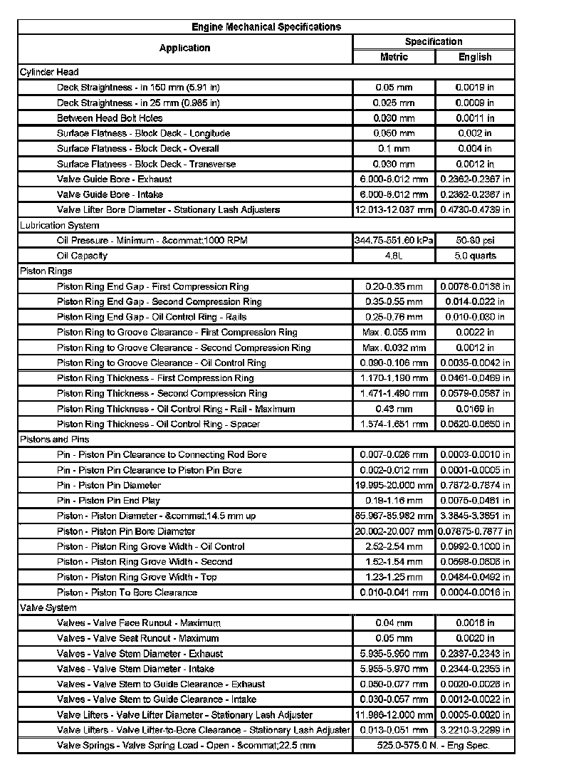 Engine Mechanical Specifications